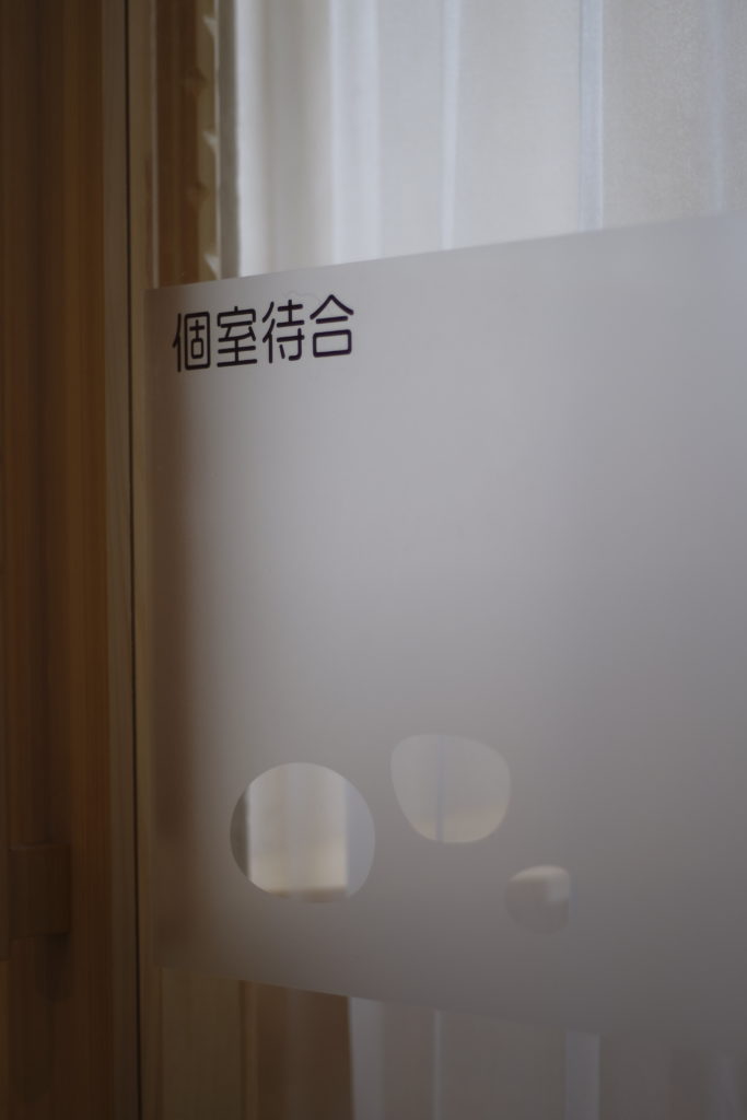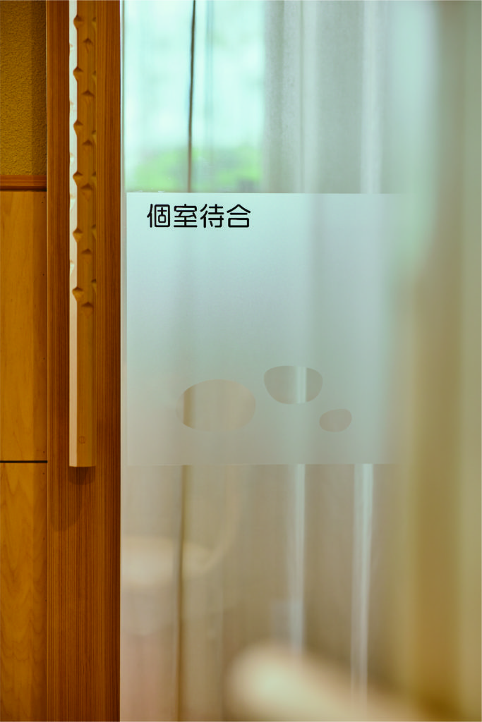 メンタルクリニックの個室待合には、患者さんやご家族が落ち着いて待ち時間を過ごせるよう工夫が施されています。