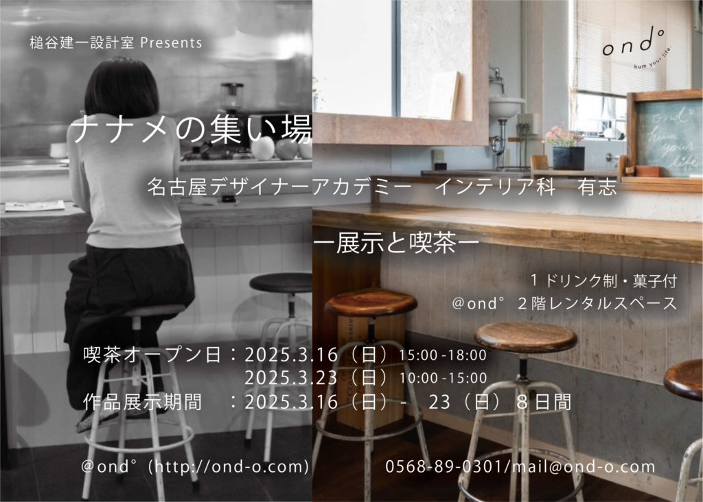 また同時開催として、ond°2階レンタルスペースにて学生の展示、喫茶イベントを行います。
