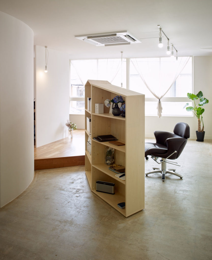 1対1の施術空間が居心地よく過ごせられるように圧迫感を軽減しつつ、適度に包み込まれた居心地を作りました。