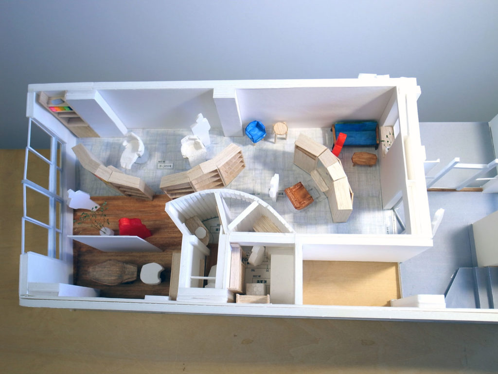 車の通行量が多い街との距離感を適度にとりながら、話し合いで生まれていた空間の原型を、出会った場所に落とし込みました。